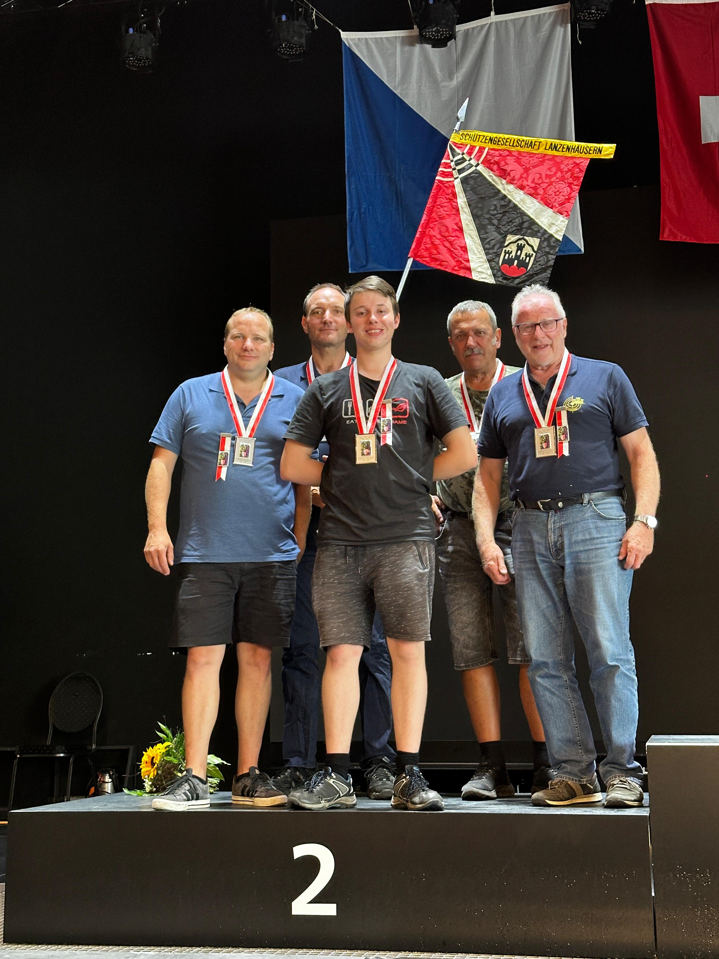 Am Schweizer Gruppenmeisterschaftsfinal 300m in Winterthur gewinnt die Gruppe von der Schützengesellschaft Lanzenhäusern die Silbermedaille im Feld E. Der SSV Schwarzenburgerland gratuliert den Schützen Bieri Daniel, Zingg Ernst, Roggli Matthias, Hürst Beat und Mast Hanspeter ganz herzlich zum Vize-Schweizermeistertitel.