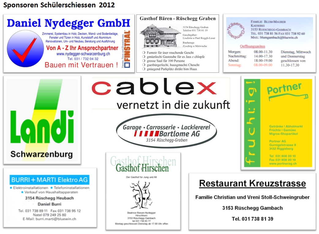 Ein herzliches Dankeschön dem Schützenverein Rüschegg, Pistolenschützen Gambach und Schwarzenburg, den Juniorenbetreuern, Eltern, Sponsoren, und allen die zum guten Gelingen beigetragen haben.